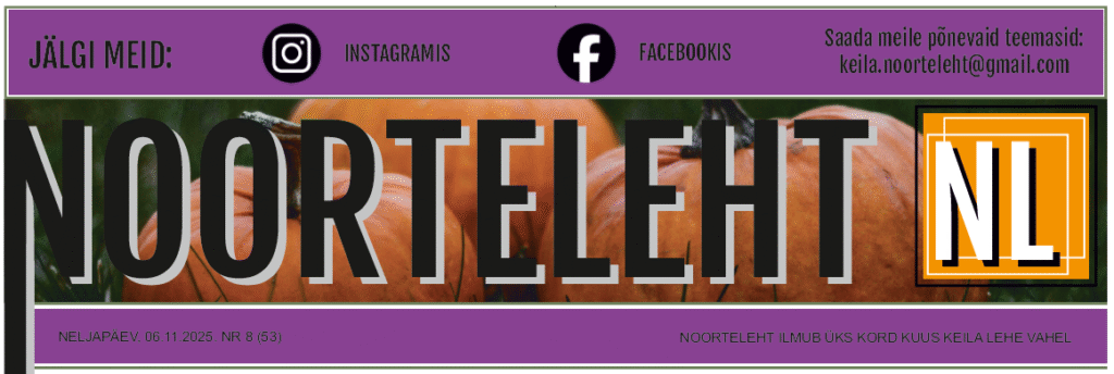 Noorteleht 02.10.2025 Tunniplokkide uuring; Arvamus “Üks on kindel: see pole enam see, mis varem”; Intervjuu Qiaoqiaoga; Arvamus “Kas areng on alati hea asi?; Intervjuu Keila Malevkonna droonigrupp; Ja palju muud põnevat. LOE EDASI